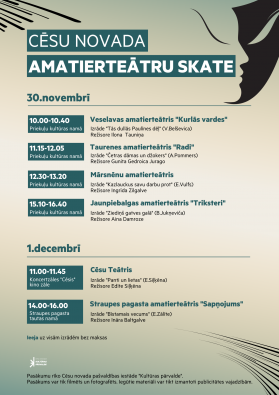 Lasīt vairākSestdien, 30. novembrī un 1. decembrī, Priekuļos un Cēsīs norisināsies skate "Gada izrāde 2024", kurā piedalīsies seši Cēsu novada amatierteātri.