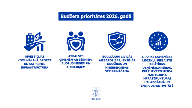 Cēsu novada dome 12. februārī apstiprinājusi 2026. gada budžetu, kas veidots ar skatu uz novada ilgtspējīgu attīstību, iedzīvotāju drošību un labklājību. Šogad īpaša uzmanība pievērsta tam, lai turpinātu modernizēt komunālos pakalpojumus, sporta infrastruktūru un satiksmes risinājumus, kā arī veiktu nozīmīgus ieguldījumus energoefektivitātē. Vienlaikus budžetā nostiprināta apņemšanās sniegt plašāku atbalstu ģimenēm ar bērniem, audžuģimenēm un aizbildņiem, saglabājot visus līdzšinējos sociālos pakalpojumus un palielinot vairākus pabalstu veidus. Tas ir būtiski laikā, kad sabiedrības novecošanās un darbspējīgo iedzīvotāju skaita samazināšanās rada lielāku slodzi sociālajai nozarei.