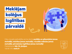 Lasīt vairākAicinām darbā kolēģus Izglītības pārvaldē: