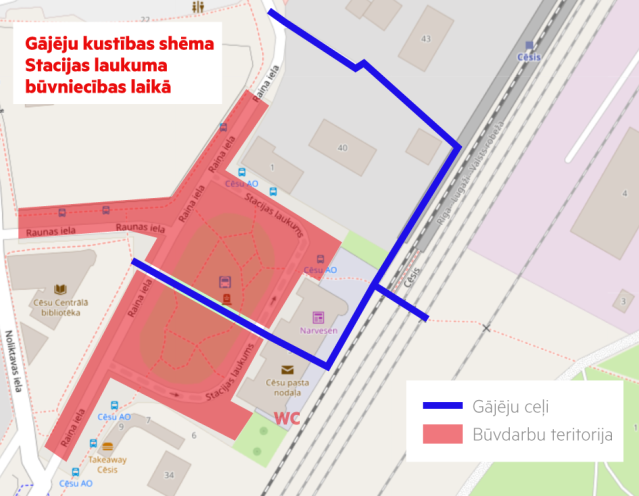 Cēsu Stacijas laukumā šobrīd norisinās aktīvi būvdarbi, tāpēc aicinām visus iedzīvotājus un apmeklētājus ņemt vērā dažādas izmaiņas un plānot savus pārvietošanās maršrutus atbilstoši jaunajiem apstākļiem.