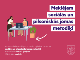 Cēsu novada Centrālās administrācijas Izglītības pārvalde aicina darbā sociālās un pilsoniskās jomas metodiķi.