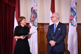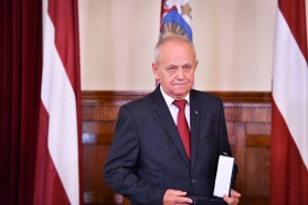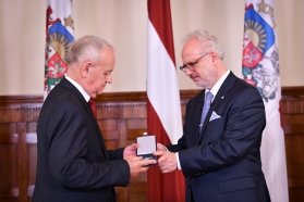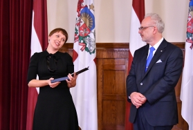 Svinīgā ceremonijā Rīgas pilī Valsts prezidents Egils Levits pasniedza Triju Zvaigžņu ordeņus diviem izciliem cēsniekiem - Elīnai Kalniņai un Pēterim Ozolam.