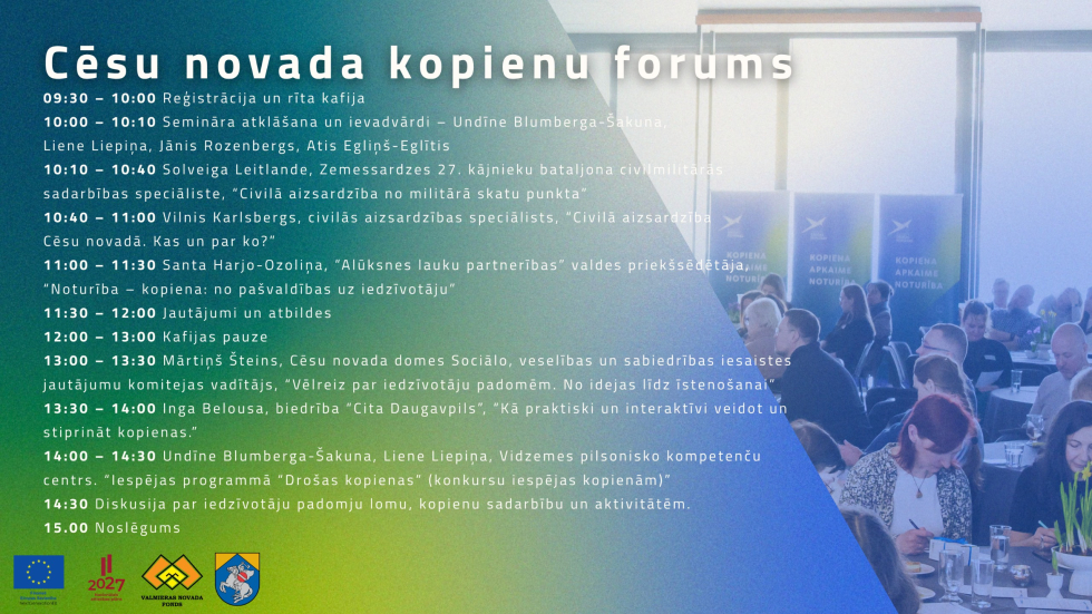 29. aprīlī aicinām Cēsu novada iedzīvotājus, aktīvistus un kopienu pārstāvjus uz pasākumu, kurā runāsim par svarīgāko – kā stiprināt mūsu kopienas un veidot noturīgu nākotni, kā mēs kā kopiena rīkojamies krīzes situācijās? Cik gatavi esam, un ko varam darīt labāk jau šodien?