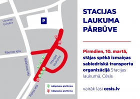 Pirmdien, 10. martā, Cēsu autoostā stājas spēkā sabiedriskā transporta organizācijas izmaiņas, ietekmējot autobusu iekāpšanas un izkāpšanas platformu atrašanās vietas. Izmaiņas ir daļa no rekonstrukcijas projekta, kura mērķis ir uzlabot infrastruktūru un satiksmes organizāciju Stacijas laukumā un tam piegulošajās ielās.