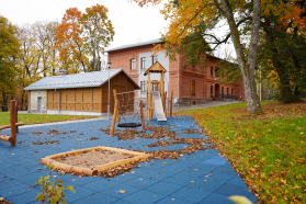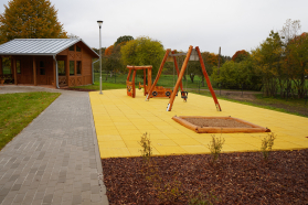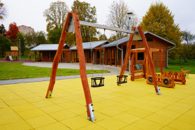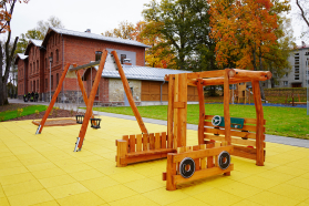 Teritorijas labiekārtošana ietver pārbūvētu stāvlaukumu, izbūvētus gājēju celiņus un rotaļu laukumu ar moderniem spēļu elementiem un nojumēm. Šie uzlabojumi radīs drošu vidi bērnu rotaļām un veicinās aktīvu atpūtu brīvā dabā.