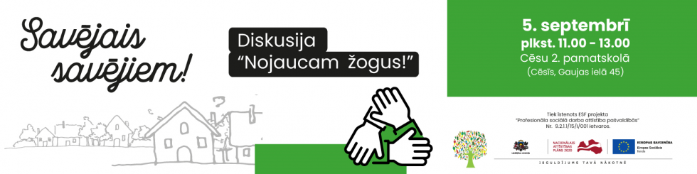 Otrdien, 5.septembrī, notiks diskusija ''Nojaucam žogus'', kurā sarunāsimies par sociālā darbinieka kopienā lomu, uzdevumiem un šāda sociālā darba virziena ieguvumiem vietējiem iedzīvotājiem un pašvaldībai. Diskusija norisināsies klātienē, Cēsu 2.pamatskolas zālē (Cēsīs, Gaujas iela 45), no plkst.11.00 līdz plkst.13.00 (reģistrācija no plkst.10.00).