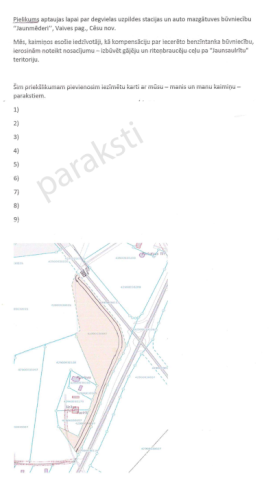 Šim priekšlikumam pievienosim iezīmētu karti ar mūsu – manis un manu kaimiņu parakstiem. |
