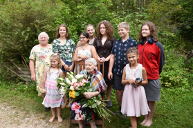 Jubilejā viņu mīļi sveica meita, mazbērni, mazmazbērni, kā arī radi un draugi.