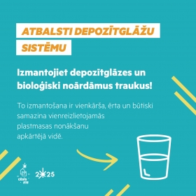 Lai mazinātu vienreizējās lietošanas plastmasas trauku lietošanu, izmantojiet depozītglāzes un bioloģiski noārdāmus traukus. To izmantošana ir vienkārša, ērta un būtiski samazina vienreizlietojamās plastmasas nonākšanu vidē.