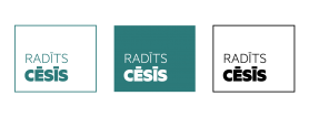 Logotips veidots no diviem elementiem: četrstūra rāmja un uzraksta “RADĪTS CĒSĪS”. Piederības zīme ir pielāgojama produkta vai pakalpojuma specifikai.