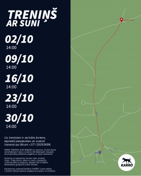 Biedrība "Karro" aicina aktīvu suņu aktīvus saimniekus pieteikties uz koptreniņiem: