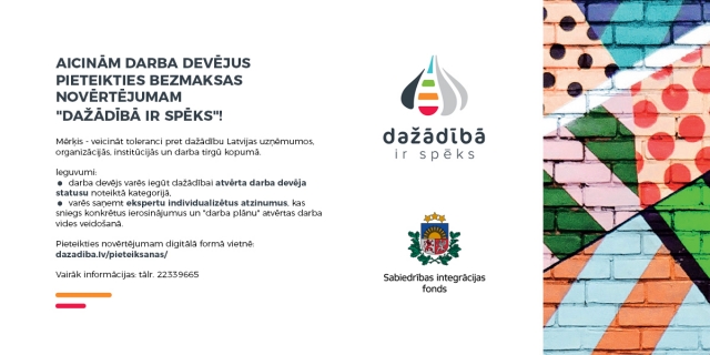 Jau sesto gadu pēc kārtas Sabiedrības integrācijas fonds (SIF) aicina ikvienu darba devēju gan no privātā, gan publiskā sektora pieteikties bezmaksas novērtējumam ''Dažādībā ir spēks''. Tā mērķis ir veicināt toleranci pret dažādību Latvijas uzņēmumos, organizācijās, institūcijās un darba tirgū kopumā, kā arī veidot Latvijas iedzīvotājos izpratni par dažādības jēdzienu un dalīties ar labās prakses piemēriem.