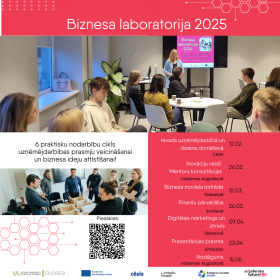 Lai sniegtu iespējas attīstīt uzņēmējdarbības prasmes un radīt jaunas idejas biznesā, Vidzemes Augstskola ar Cēsu novada pašvaldības atbalstu no 12. februāra līdz 15. maijam organizēs nodarbību ciklu “Biznesa laboratorija 2025”.