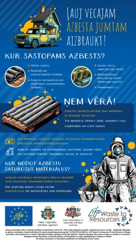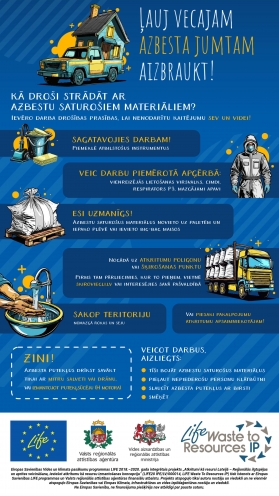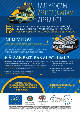 Par iespējām nodot azbestu saturošus atkritumus var uzzināt vietnē skiroviegli.lv.