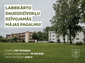Cēsu novada pašvaldība aicina līdz 10.maijam iedzīvotājus un māju apsaimniekotājus iesniegt projektus pašvaldības daudzdzīvokļu dzīvojamo māju piesaistīto zemesgabalu labiekārtošanai. Programmas īstenošanai 2024.gada pašvaldības budžetā paredzēti 35 000 EUR.