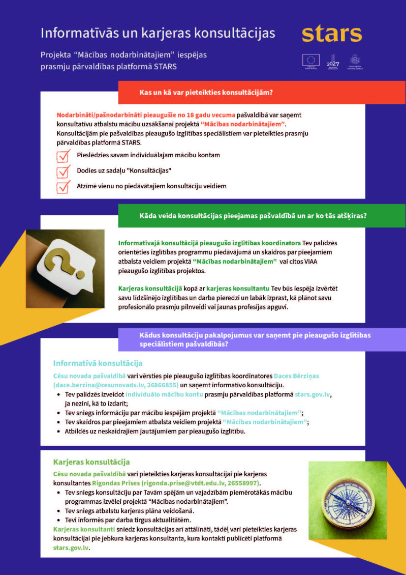 Projekta karjeras konsultants: Rigonda Prīse, t.: 26558997, rigonda.prise@cesunovads.edu.lv
