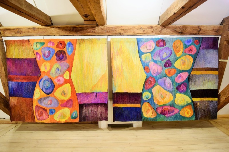 Cēsu Jaunās pils Bēniņu zālē iespējams apskatīt tekstilmākslinieces Ivetas Vecenānes dzīves priecigo un krāsaino darbu izstādi ‘Virmojums’’.
