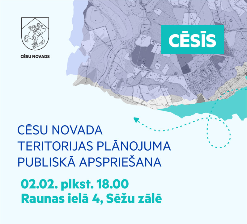 Aicinām 2. februārī plkst. 18.00 uz teritorijas plānojuma un stratēģiskā ietekmes uz vidi novērtējuma sabiedrisko apspriešanu Cēsīs. Sanāksmei varēs pieslēgties gan attālināti, gan apmeklēt klātienē Domes sēžu zālē Raunas ielā 4.