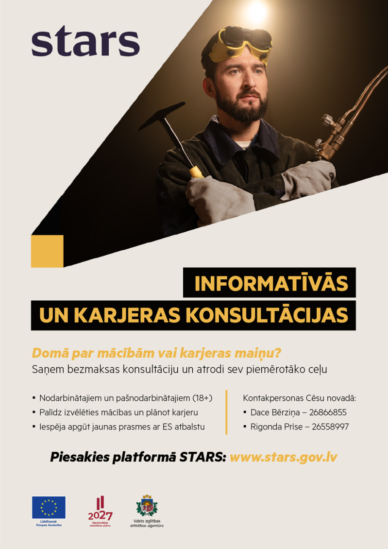 Plašāka informācija par mācību iespējām pieejama www.stars.gov.lv un platformas STARS Facebook lapā.