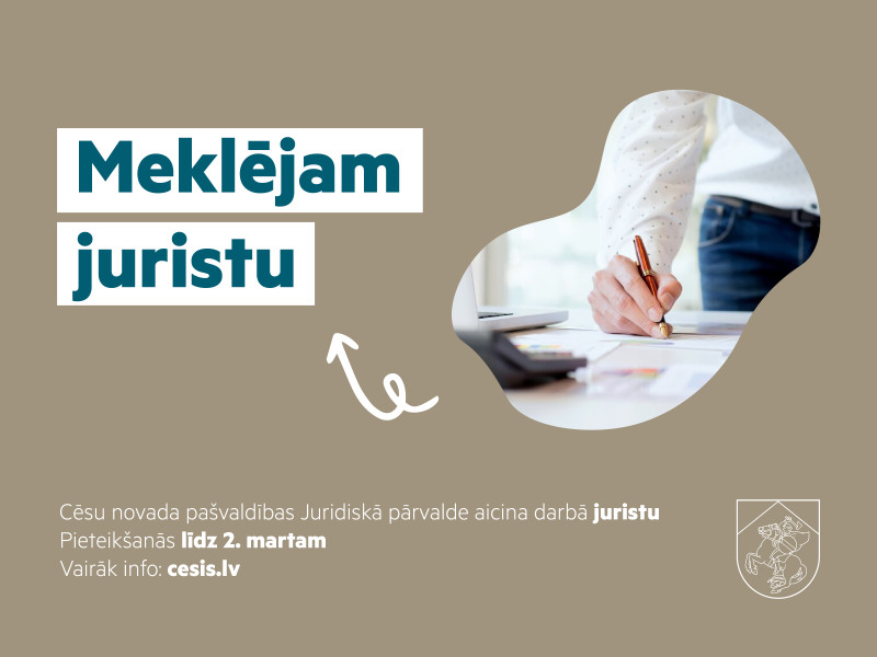 CV un pieteikuma vēstuli sūti uz e-pasta adresi vakances@cesunovads.lv ar norādi “jurists” līdz 2026. gada 2. martam.