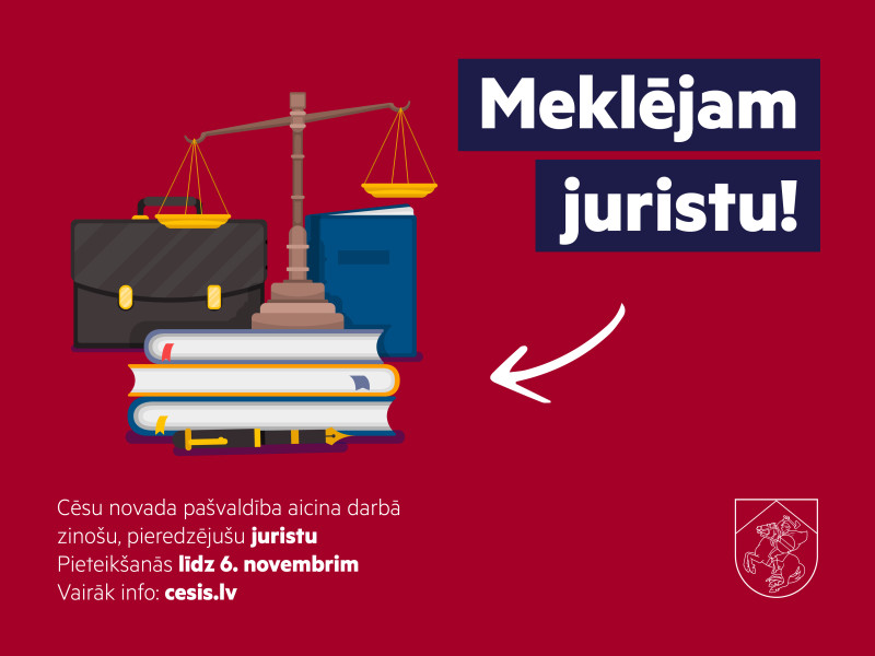 CV un pieteikuma vēstuli sūti uz e-pasta adresi vakances@cesunovads.lv ar norādi “jurists” līdz 2025. gada 6.novembrim.