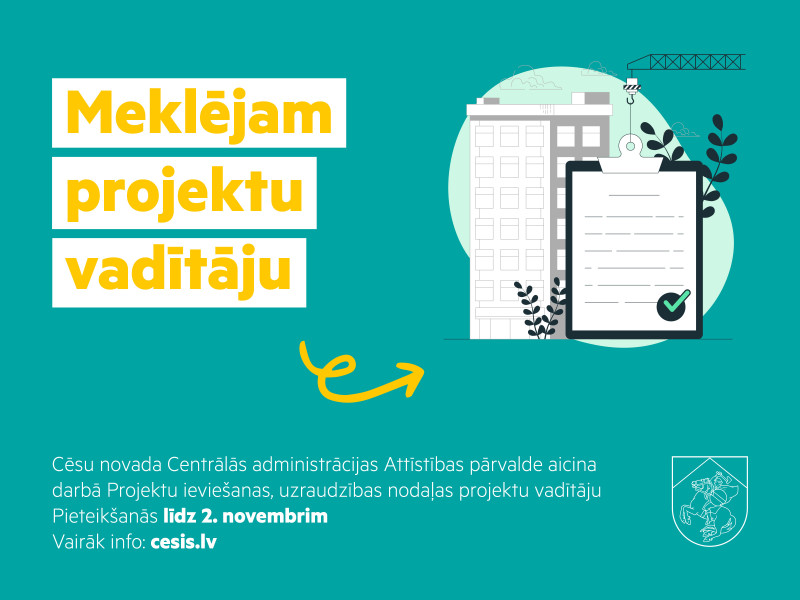 CV un motivēts pieteikums iesniedzams sūtot uz e-pasta adresi vakances@cesunovads.lv ar norādi “projektu vadītājs” līdz 2025. gada 2. novembrim (ieskaitot).