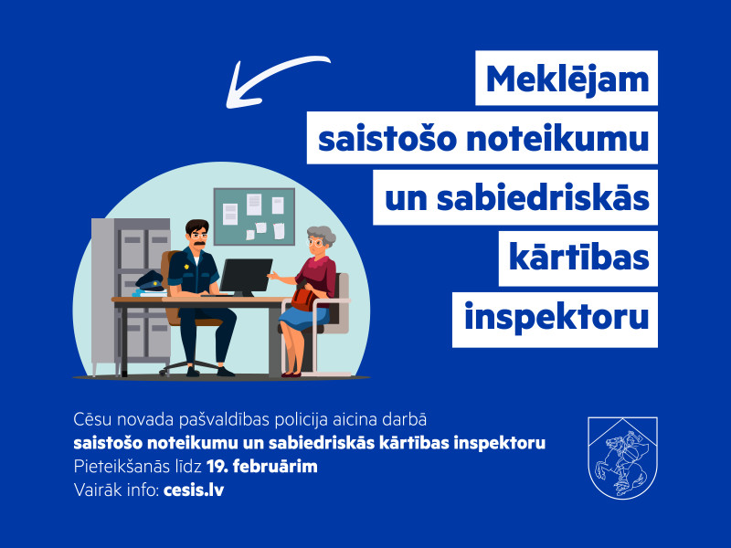 Cēsis ir drosmīga pašvaldība ar mērķi kļūt par izcilāko dzīves vietu Latvijā, un apzināmies, ka tā sasniegšanai vajadzīgs augsts servisa un speciālistu profesionalitātes līmenis. Ja saskati iespējas un vēlies palīdzēt Cēsīm augt un nodrošināt tajā sabiedrisko kārtību, tad pievienojies mūsu komandai!
