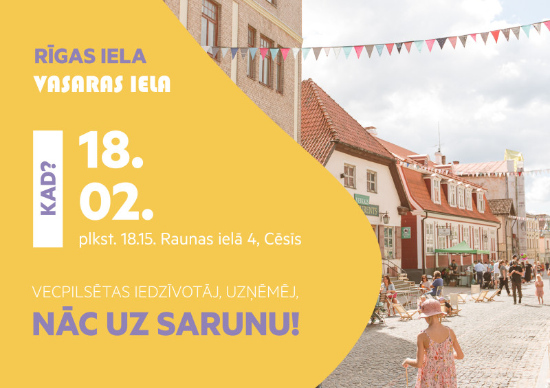 Lai iepazīstinātu ar šī gada iecerēm, aicinām vecpilsētas uzņēmējus un iedzīvotājus uz sarunu 18. februārī plkst. 18.15 Raunas ielā 4, Cēsīs.