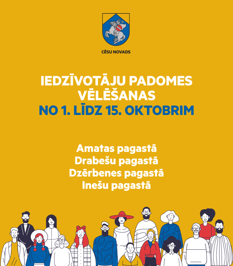 No 1. līdz 15. oktobrim notiks iedzīvotāju padomes vēlēšanas Amatas, Drabešu, Dzērbenes un Inešu pagastos.