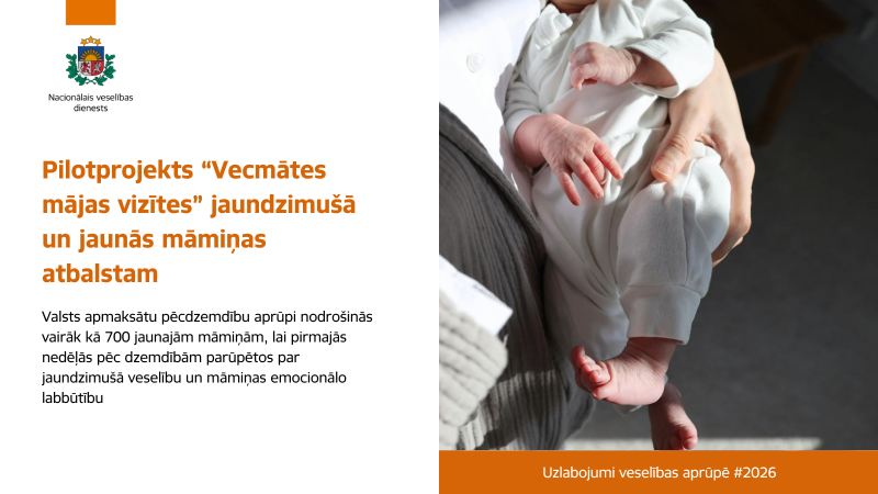 Vēl viens nozīmīgs jaunums — pilotprojekta “Vecmātes mājas vizīte” Rīgā un reģionos valsts apmaksātu pēcdzemdību aprūpi nodrošinās vairāk kā 700 jaunajām māmiņām, lai pirmajās nedēļās pēc dzemdībām parūpētos par jaundzimušā veselību un sievietes emocionālo labbūtību.