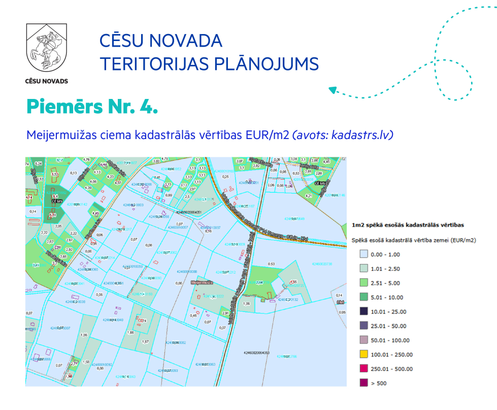 Citos piemēros redzams, ka arī teritorijās ar vienādu funkcionālo zonējumu (piemēram, lauksaimniecības teritorijas) nekustamā īpašuma lietošanas mērķi var būt atšķirīgi, un tas tieši atspoguļojas arī kadastrālajās vērtībās.