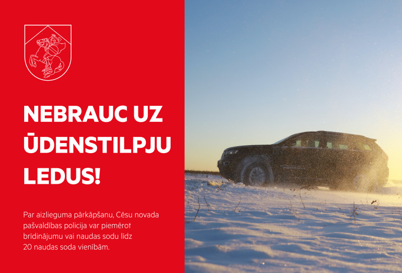 Lai mazinātu riskus iedzīvotāju dzīvībai un veselībai, kā arī novērstu kaitējumu videi, Cēsu novadā noteikts aizliegums pārvietoties ar mehāniskajiem transportlīdzekļiem pa publisko un pašvaldības valdījumā esošo ūdenstilpju ledu.