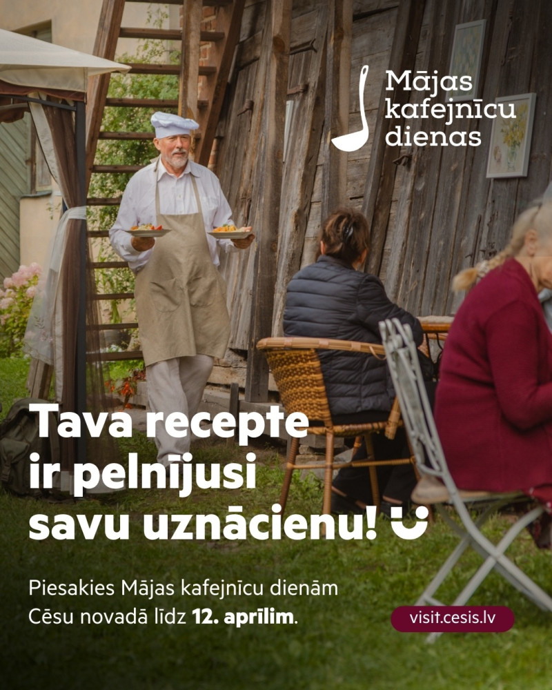 Arī šogad visā Latvijā notiks tautā iemīļotās “Mājas kafejnīcu dienas 2026”, kad lauku saimniecības, dārzi, pagalmi uz nedēļas nogali pārtop par unikālām kafejnīcām, aicinot viesus baudīt īpašas maltītes, ļauties vietējām garšām un piedzīvot viesmīlību un sirsnīgu atmosfēru.