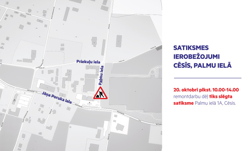 Lasīt vairākPirmdien, 20. oktobrī, Cēsīs, Palmu ielā pie ēkas Palmu 1A, SIA “Farads” veiks rakšanas darbus, kuru laikā tiks pārrakta ielas brauktuve.