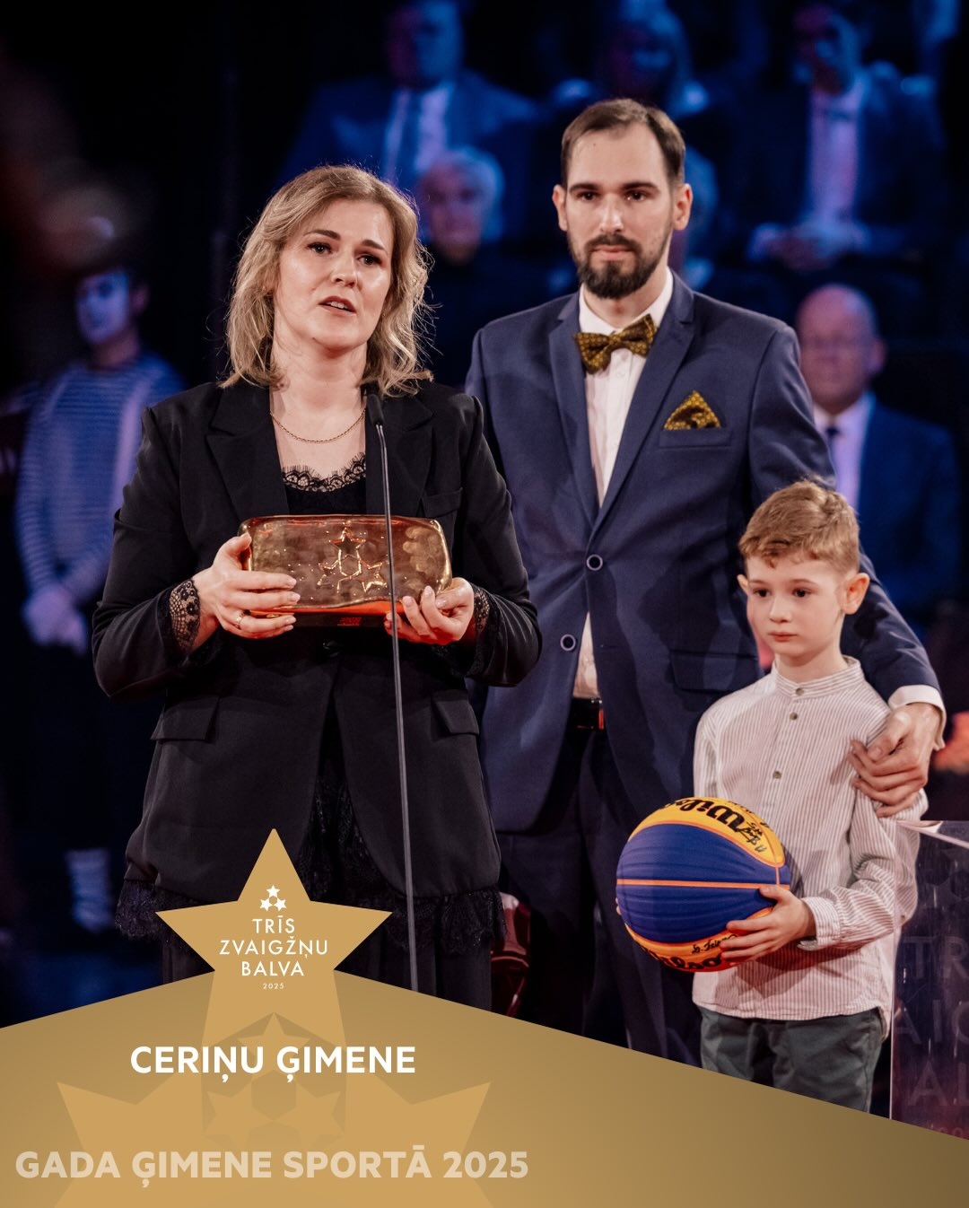 Nominācijā "Gada ģimene sportā" par laureāti tika atzīta Ceriņu ģimene no Cēsu novada – mamma Madara, tētis Kristaps un vecākais dēls Kārlis –, apliecinot sporta nozīmi kā vērtību, kas vieno paaudzes un stiprina ģimenes ikdienā.