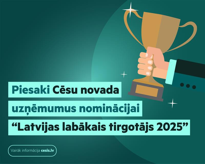 Lasīt vairākArī šogad Latvijas Tirgotāju asociācija (LTA) sadarbībā ar Latvijas Pašvaldību savienību (LPS) rīko konkursu "Latvijas labākais tirgotājs". Cēsu novada pašvaldība aicina iedzīvotājus ieteikt pretendentus vairākās kategorijās, īpašu uzmanību pievēršot tieši mazākiem uzņēmumiem, kuri būtu pelnījuši lielāku atpazīstamību.